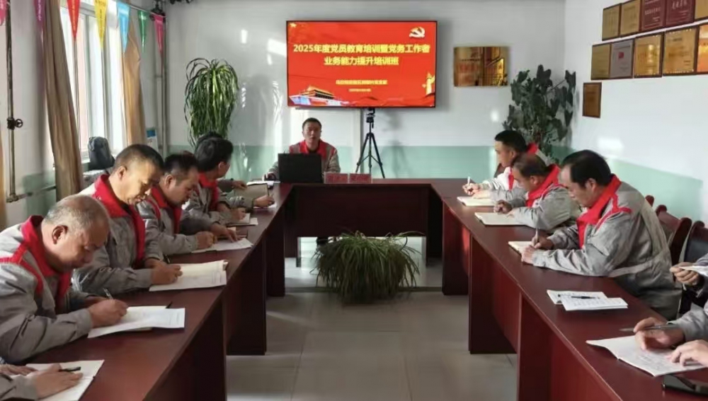 為深入學習貫徹習近平新時代中國特色社會主義思想,進一步加強基層黨組織建設,根據《陜西銀礦、煎茶嶺鎳業2025年度黨員教育培訓計劃》要求,11月14日至16日,烏拉特后旗五洲銀興黨支部精心組織開展2025年度黨員教育培訓暨黨務工作者業務能力提升培訓工作,支部支委成員授課,全體在崗黨員參加培訓。